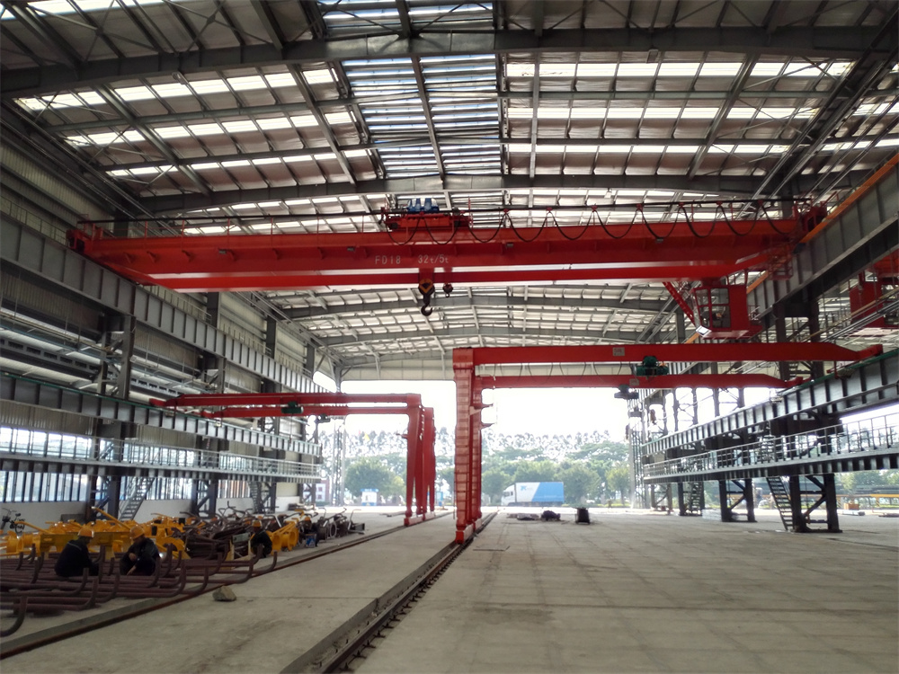 起重機(jī)工作級(jí)別A3~A7,常用起重量為3~250t。適宜在環(huán)境溫度-20℃~40℃,相對(duì)濕度不大于85%的工廠、倉(cāng)庫(kù)及貨場(chǎng)等處作裝卸吊運(yùn)工作,禁止在易燃、易爆以及充滿腐蝕性氣體的環(huán)境中工作。